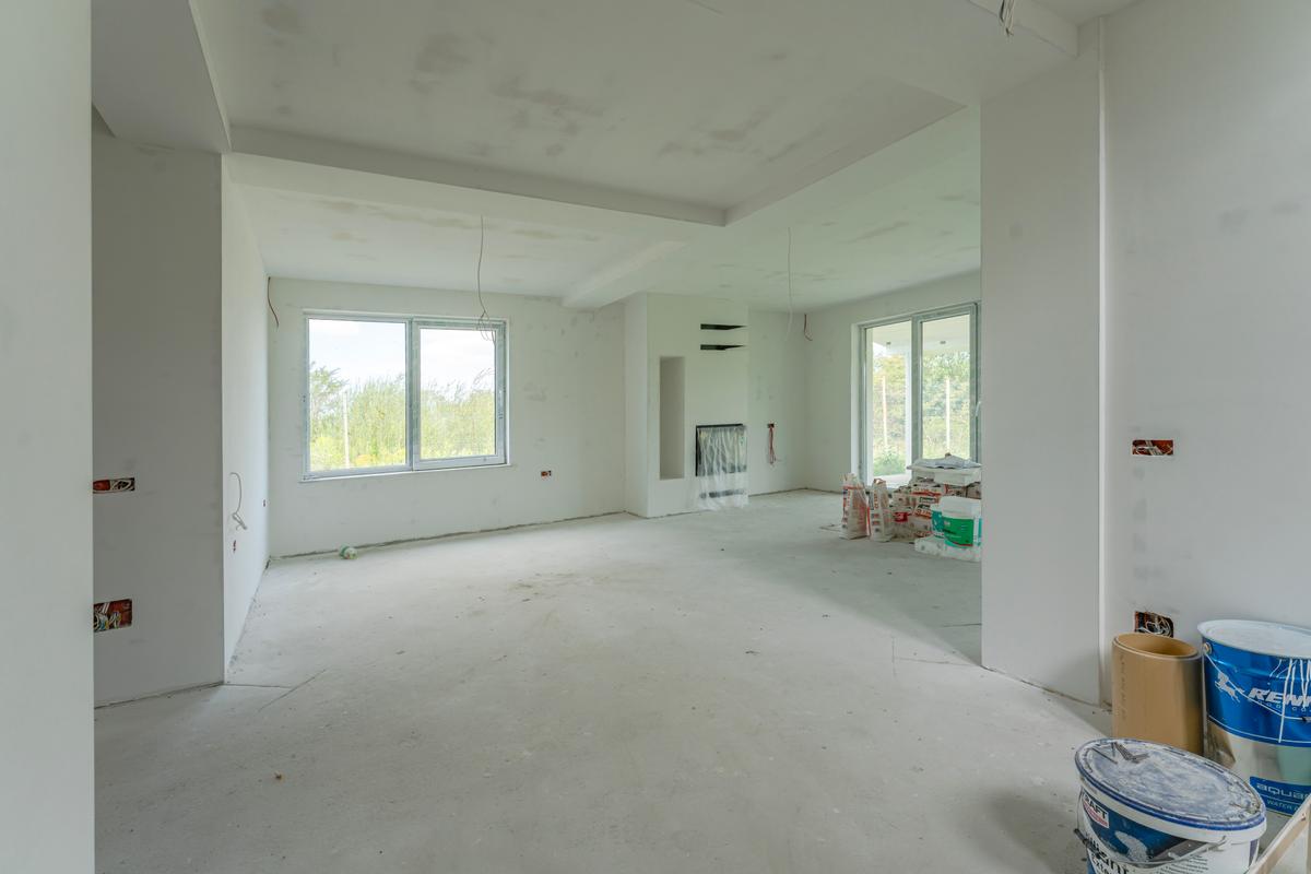 Casa este izolata pe exterior cu polistiren de 10 cm, are ferestre cu geam termopan cu 3 foi de sticla, acoperis din tigla. Casa se vinde la alb, cu peretii si tavanele zugravite in alb, restul finisajelor ramanand in sarcina cumparatorului.